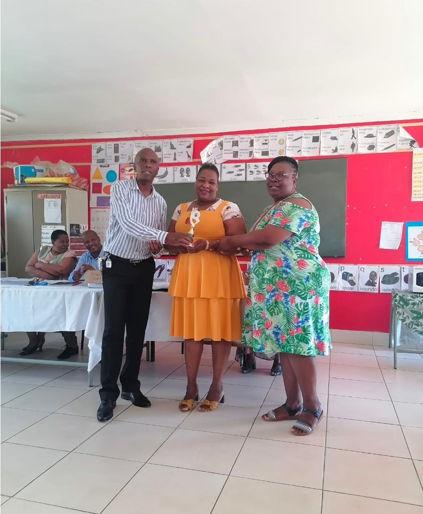 Bidding farewell to Mr Mokapi on his retirement in December 2022. He was presented with retirement award by the principal.